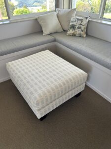 “I was extremely happy with the upholstery work done by Whangarei Upholstery. The squabs were tricky because I had an extremely limited amount of fabric and yet Goldie worked wonders and they look great. The ottoman was done beautifully and both jobs were turned around speedily. A pleasure doing business with Trish and Goldie and I would definitely use them again.